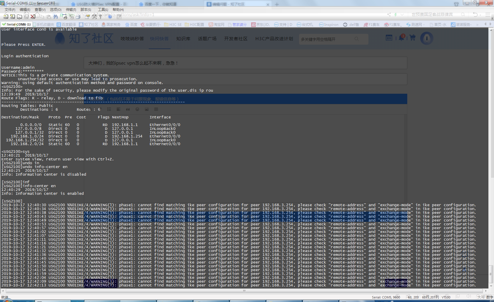 今天把usg配置清空重新来过就不行了,ike sa都起不来,然后usg2130一直报IKE错误