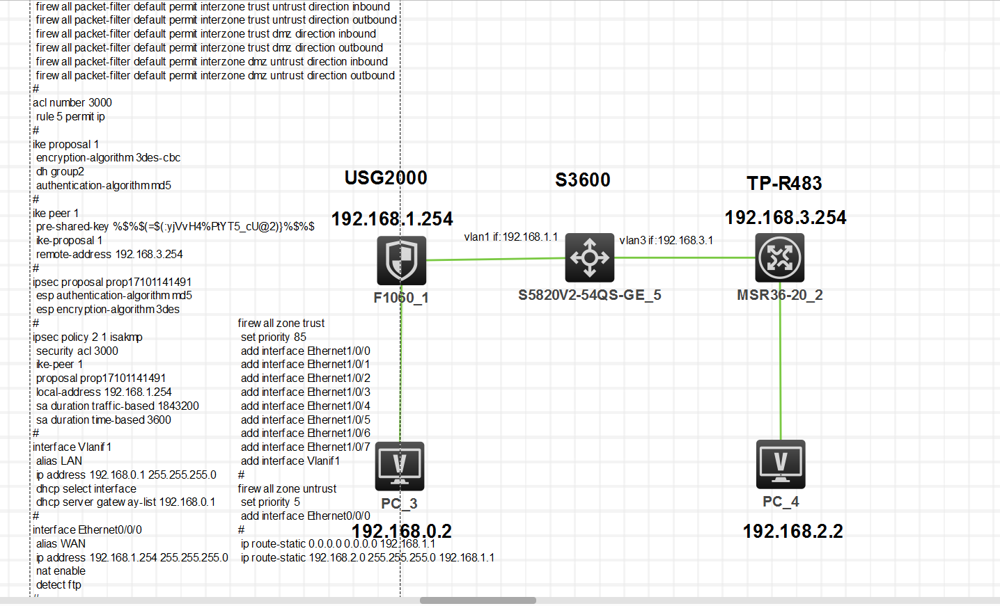 组网说明:一台usg2130+s3600(模拟公网部分)+tp-link R483