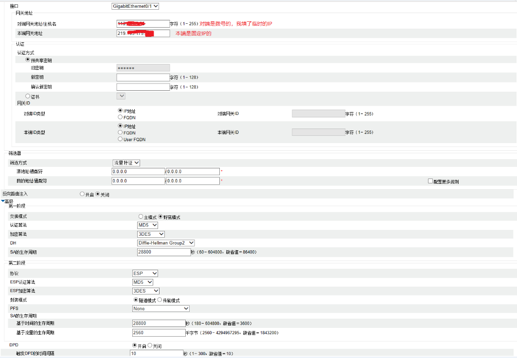 图1是本端MSR2600,固定IP,我刚看了回答就用了IP地址方式连接测试也不行啊图2是对端的TPLINK,拨号上网无域名