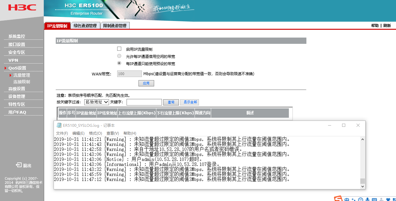 这告警是什么意思?我没有做流量qos,怎么有限制呢?如何解除限制?