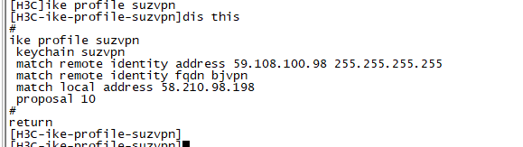 H3C SecPath F100-C-G2和H3C SecPath F100-C-G 建立ipsec 不通,debug信息没有;两端的配置检查过 display ike 和display ipsec的信息相同;不同点是两个设备的ike 的配置方式不同;