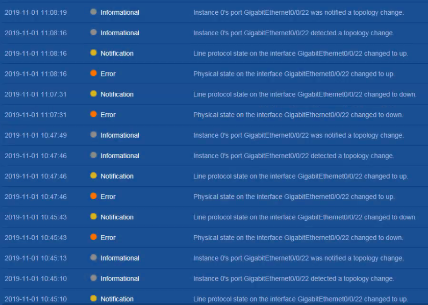 22口一直在up down,所以会一直报拓扑更改,看看为啥这个口一直Up down,是不是接口或者网线等有问题