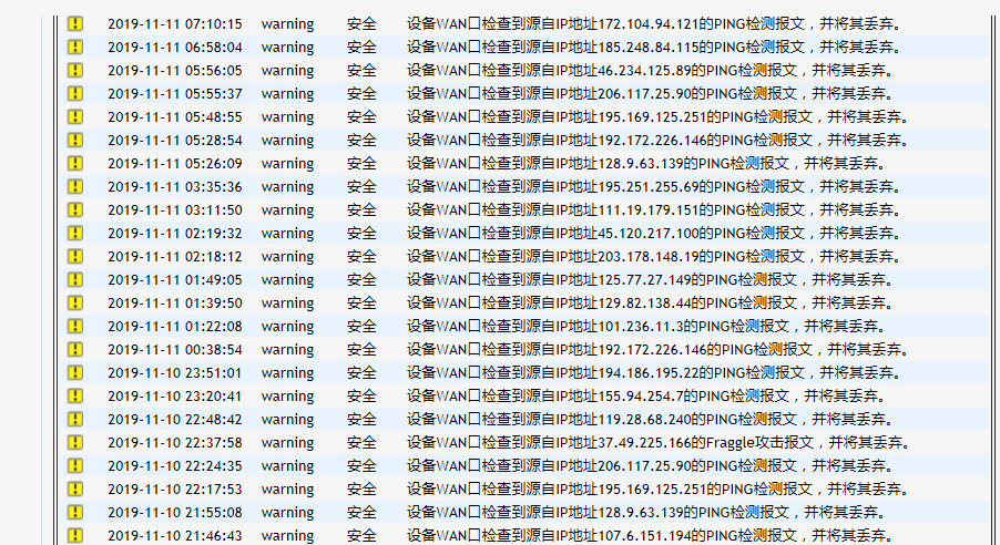 后面路由换了H3C的ER3200G2 ,每天观察发现情况有好转,但日志里面还是有很多
