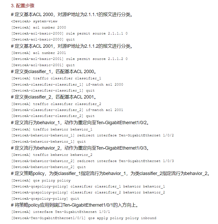 交换机MQC流量重定向不成功