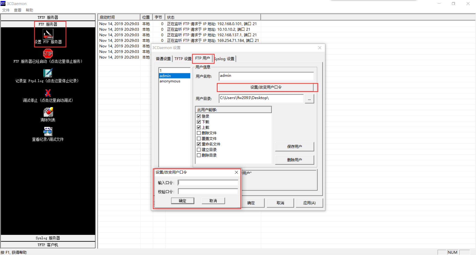 1、在主界面的左边有FTP的设置,点击开启FTP服务,设置用户名、密码或者匿名登录,接着设置FTP存放文件的路径。