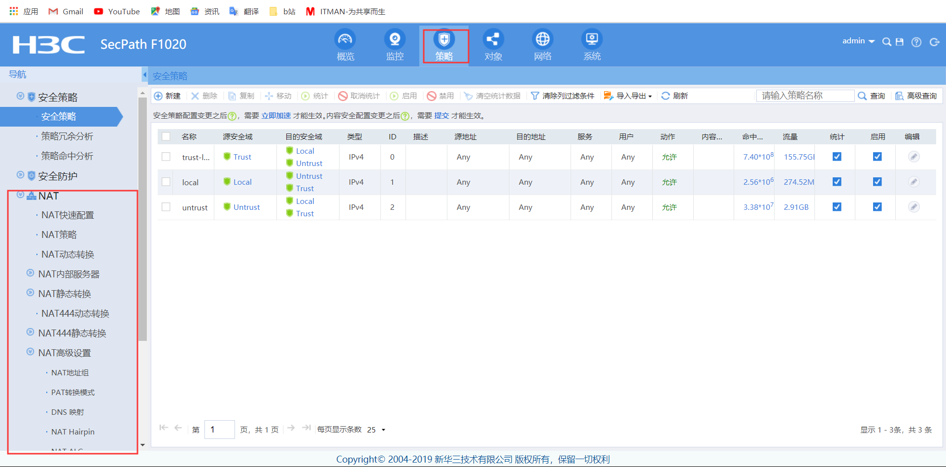 华三防火墙如何在web界面做NAT转换