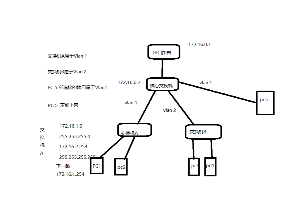 此时PC5 所属于Vlan 1 但是不能上网 请问是哪里没有设置好吗