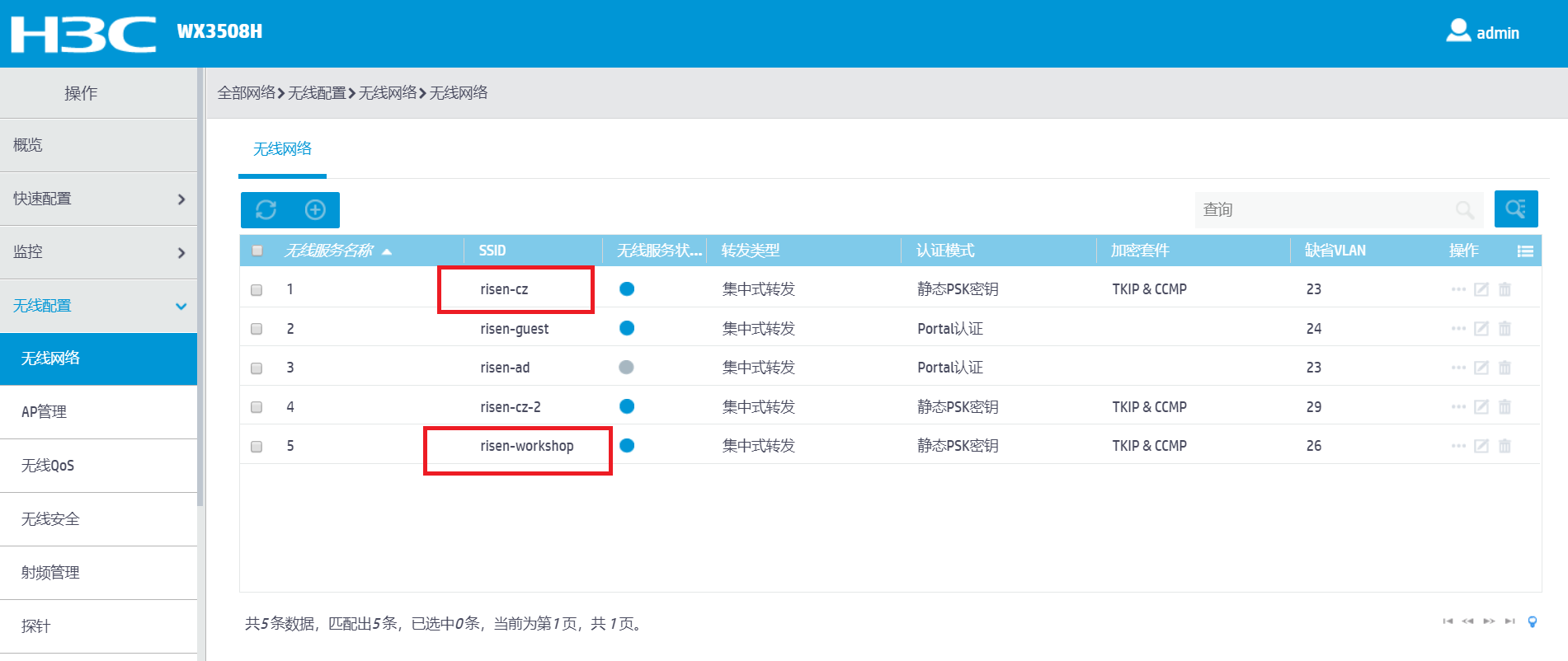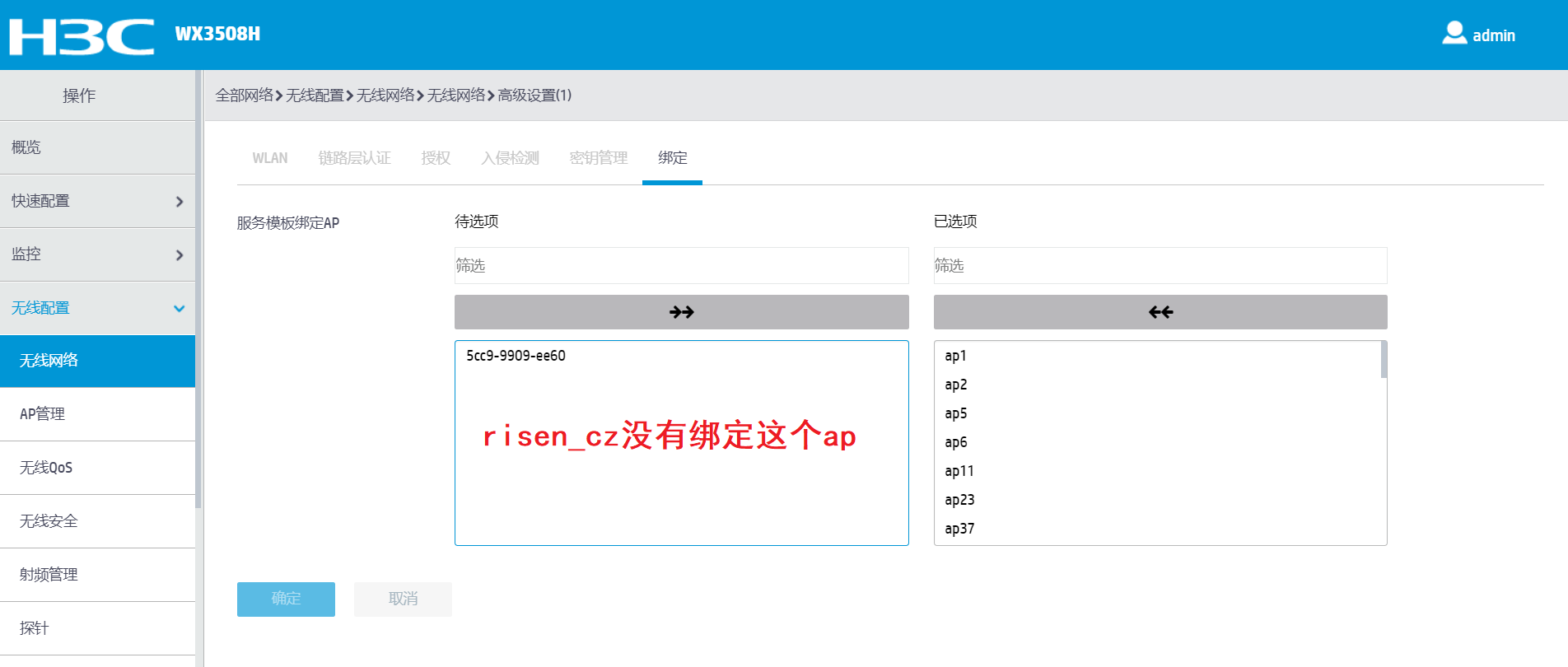 看下是不是ap组下边绑定了risen_cz这个ssid