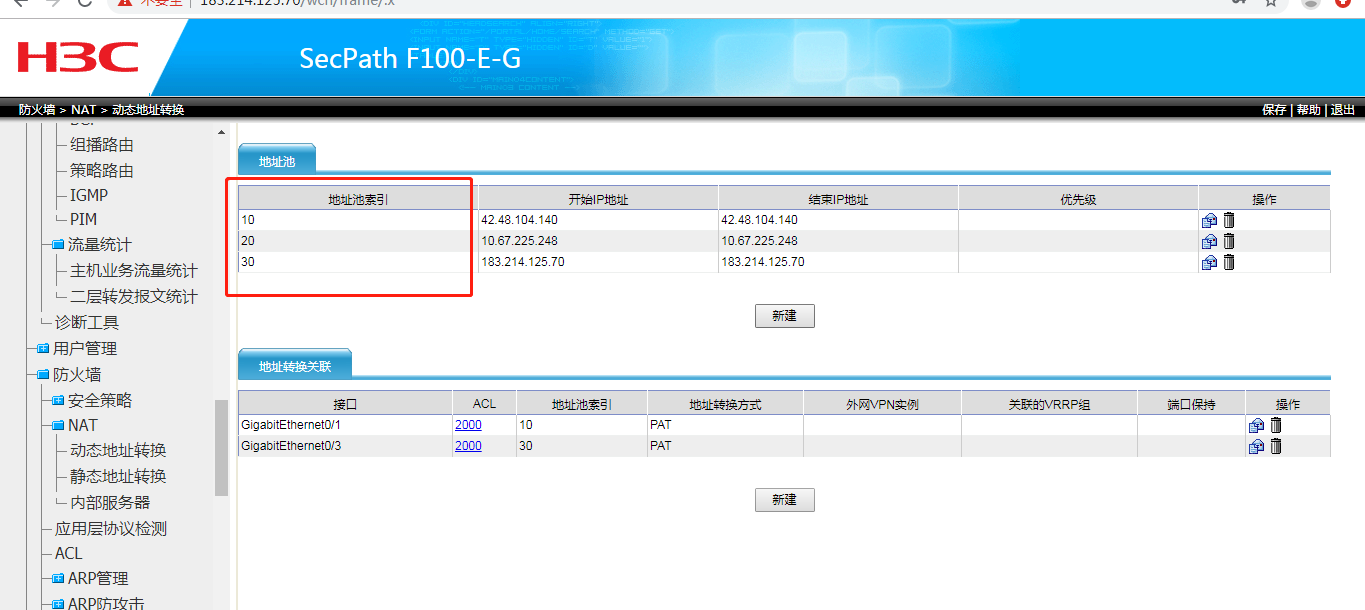 这个地址池是指你相应接口的外网地址。如果象你图里的外网地址只有一个的话,你可以把“地址转换方式”改成“EaseIP",应该就不需要填地址池了。