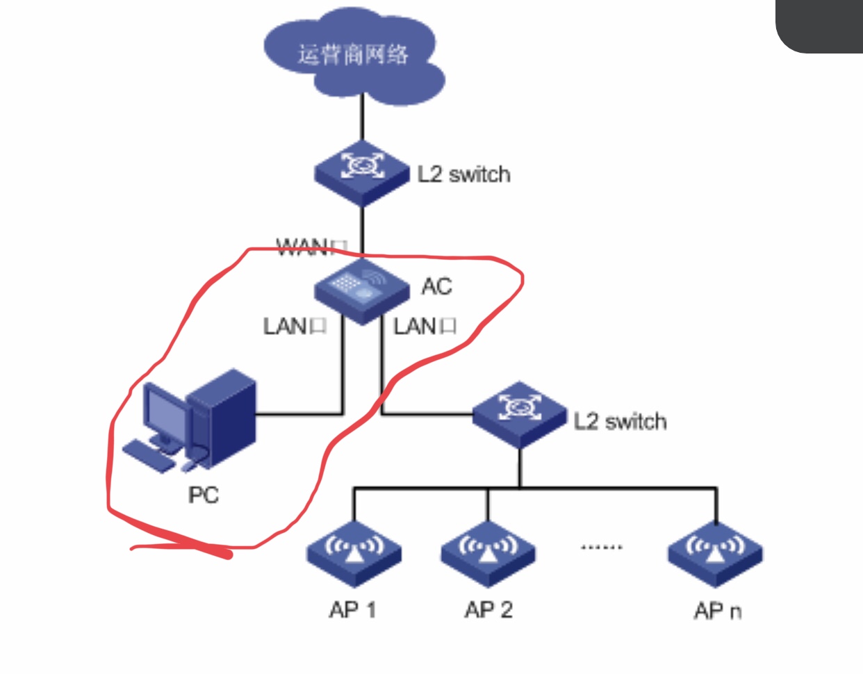 AC的LAN口,接的PC,PC可访问192.168.0.100,但无法连接互联网,
