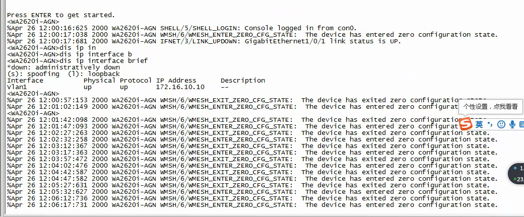AP上一直报The device has entered zero configuration state. AC是2540H AP是2620!
