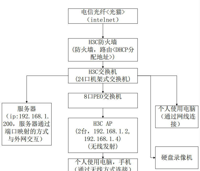 您好,我们现在有一个h3c SecPath F100-C-G防火墙(也充当路由角色),网络结构如下图,我们公司有一个固定ip。请问这个产品可以开通vpn吗??如果可以,有没有只需要界面配置就可以实现vpn开通的教程, 或者有更成熟的开通vpn方案也可以介绍一下。