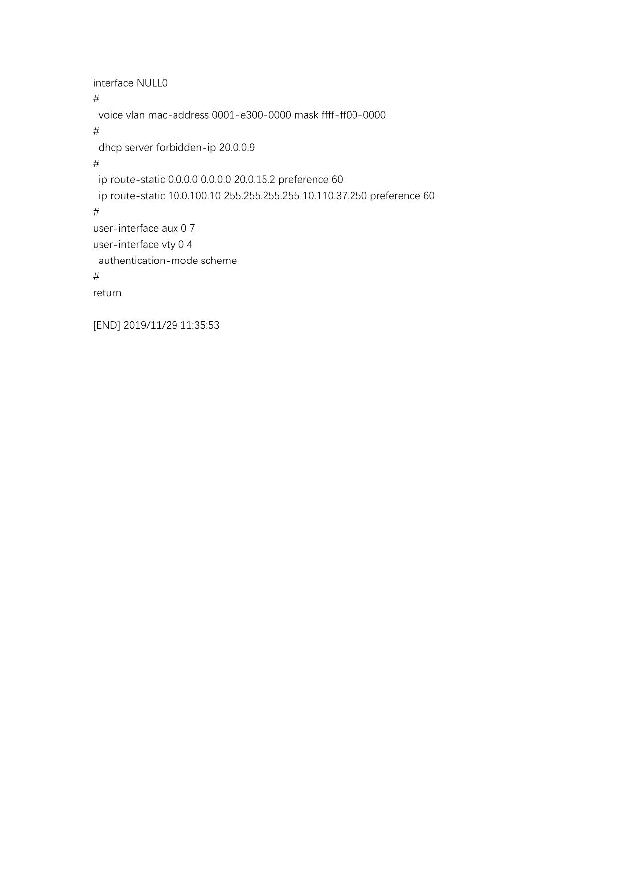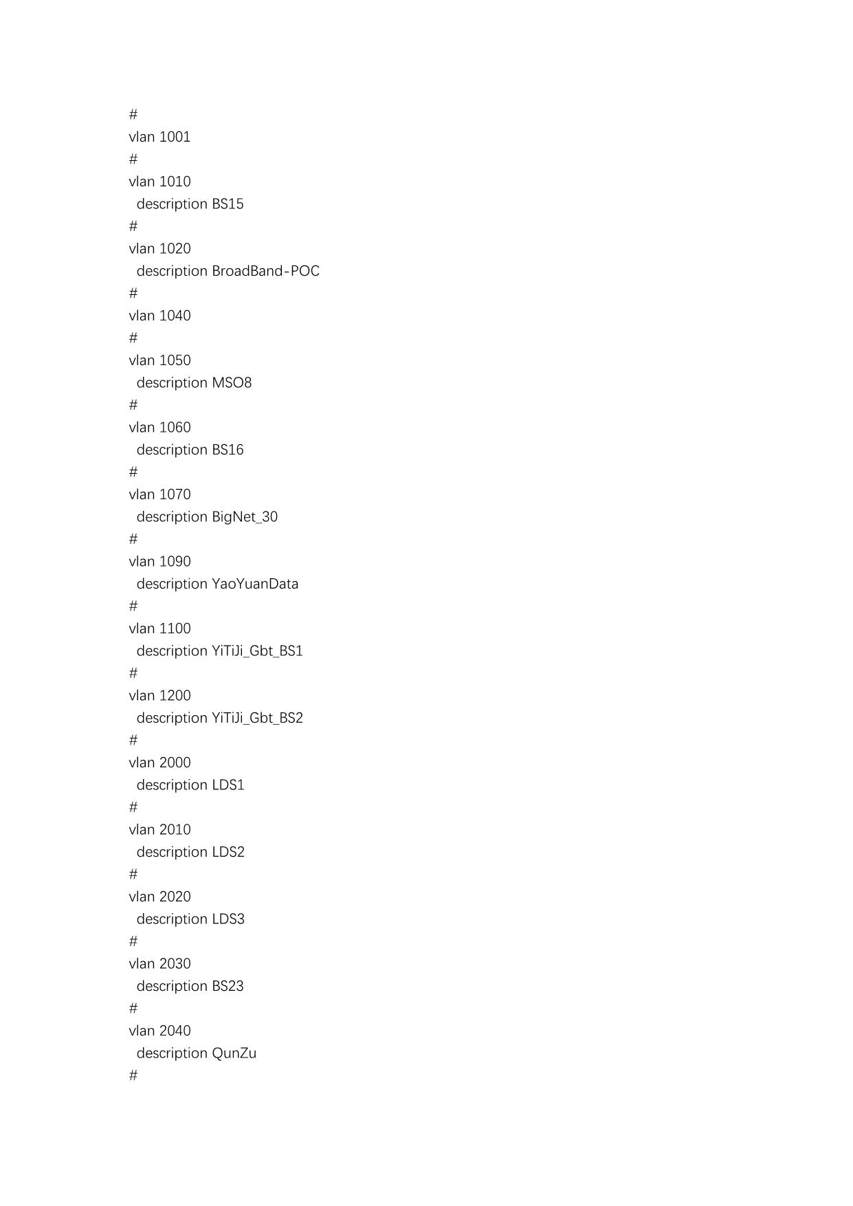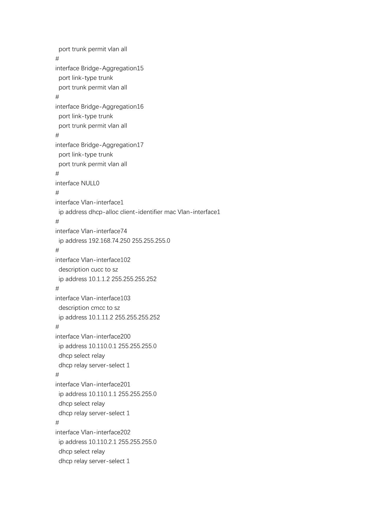 接入交换机vlanif地址:interface Vlan-interface4070 ip address 20.0.15.1 255.255.255.252 上连口