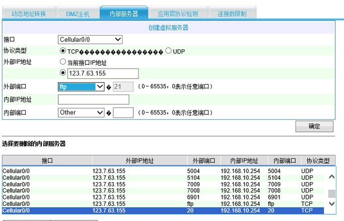您好,您是要把内部ftp服务器映射到外网27端口这个意思吧?你内网端口写ftp,外网端口写other,然后写成你想要换成的端口,应该就可以了。如有帮助,请采纳,谢谢。