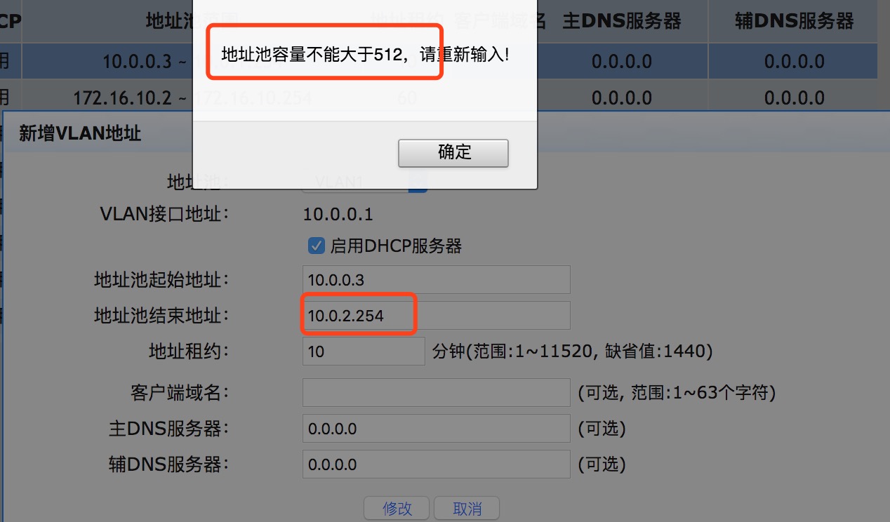预增加地址池范围报错如下: