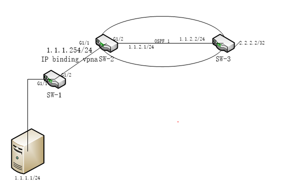 如下图如何实现1.1.1.1和2.2.2.2互通?其中SW-2的G1/1是加入vpna实例的