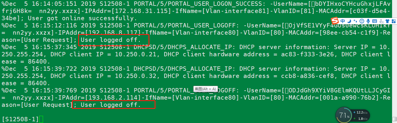 S12508核心交换机做了portal认证查看日志发现提示用户注销,交换版本 Version 5.20, Release 1828P01,请问是什么原因