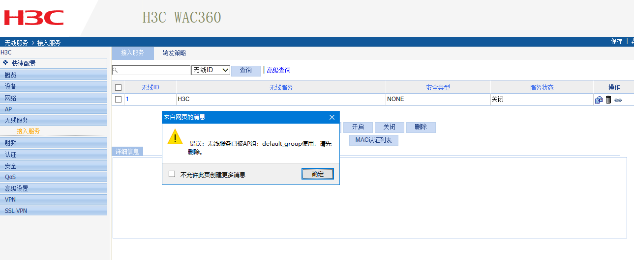 想删除系统默认的H3C服务名称,但是一直提示无法删除,请大神请教