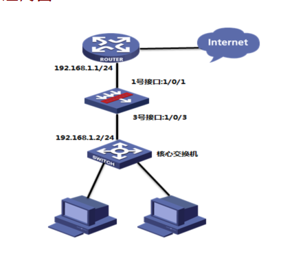 如下组网图所示,在原有的网络中增加防火墙来提高网络安全性,但又不想对原有网络配置进行改动,所以需要防火墙采用透明模式部署;其中GigabitEthernet 1/0/1接口接原有路由器的下联口,GigabitEthernet 1/0/3接口接原有的交换机上联口。