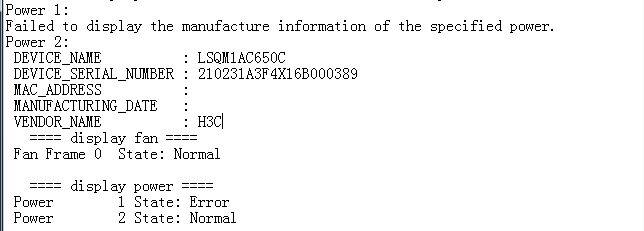 H3C S7606有两个电源,均为650W,其中一个状态为Error,这种状态一般大概率是啥问题呢。。。