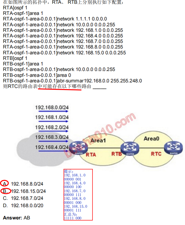 第一题聚合的掩码是 255.255.248.0 那么这个掩码包含的网段有 1~7 所以答案选AB