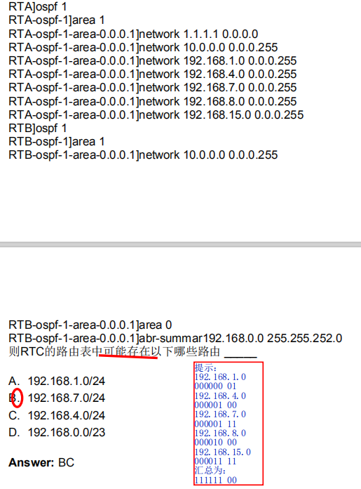 第2题聚合的掩码是 255.255.252.0 那么这个掩码包含的网段有 1~3 所以答案选BC