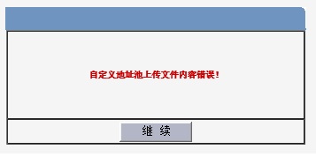 3、在进行“添加导入”后就会出现“自定义地址池上传文件内容错误!”