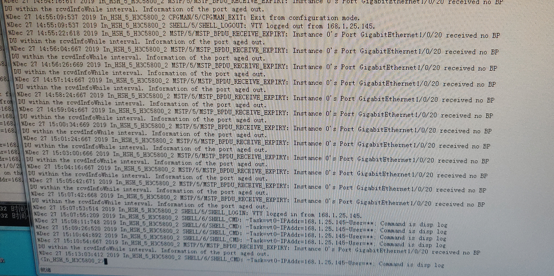 交换机一直报:instance 0"s port GigabitEthernet1/0/20 received no BPDU within the rcvdInfoWhile interval.Information of the port aged out.这个是什么问题导致的?