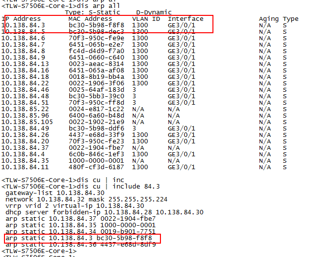 短绑定ARP信息,没有绑定接口和VLAN信息,dis arp all 也可以查看到接口和vlan ID。如红色矩形图所示。请高手解答,谢谢。