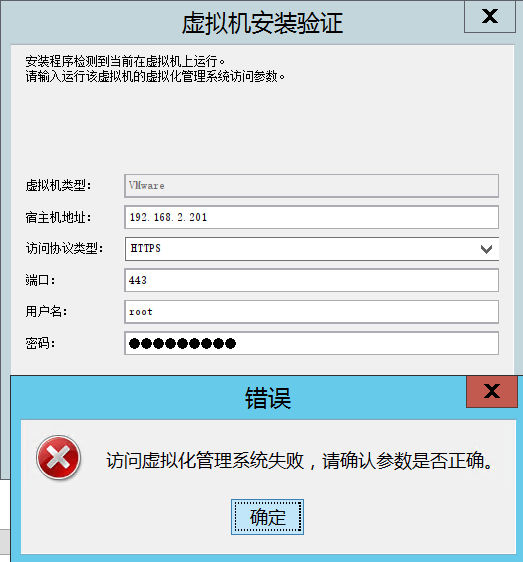 各位好,最近在安装一个iMC的测试环境,安装在VMware的虚拟化平台上,但是无论如何都无法通过虚拟机啊验证这一步,用户名密码以及IP地址都是可以确认没有错误的,不知道是什么原因