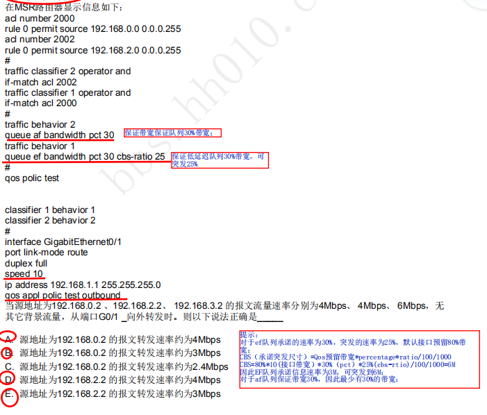class 1对应beha 1,也就是192.168.0.0网段执行动作1,保证最低延时队列30%突发25%;