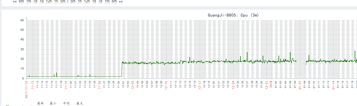 如上图,有两台做负载均衡的8805路由器,在12月1日,这两台设备突然CPU从5% 上升到20%多,然后一直维持这个值。那天没有对设备做过操作,我看了进程占用cpu的情况,最主要就是route进程,所有怀疑其他设备上面有操作导致现网中出现路由震荡,设备上配置有ospf 和bgp,由于目前路由条目数太多,没办法逐条去查看,能有什么办法确定问题点吗?