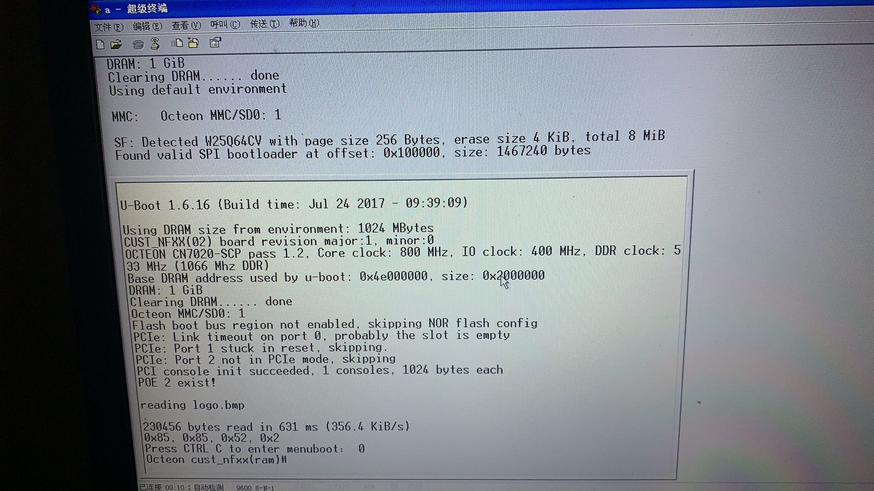 SecPath ACG1000-AK220路由器忘记密码,已经过保了。进入Con口直接显示Useradmin 输入password,没有怎么办? 进不去路由器。里面有很多配置数据,公司要求不能重置,还有什么方法更改密码,或者恢复默认密码呢??? 经过技术组人员提供的方法(重启路由按住Ctrl+B)显示不出Boot MENU界面,直接跳转到此页面
