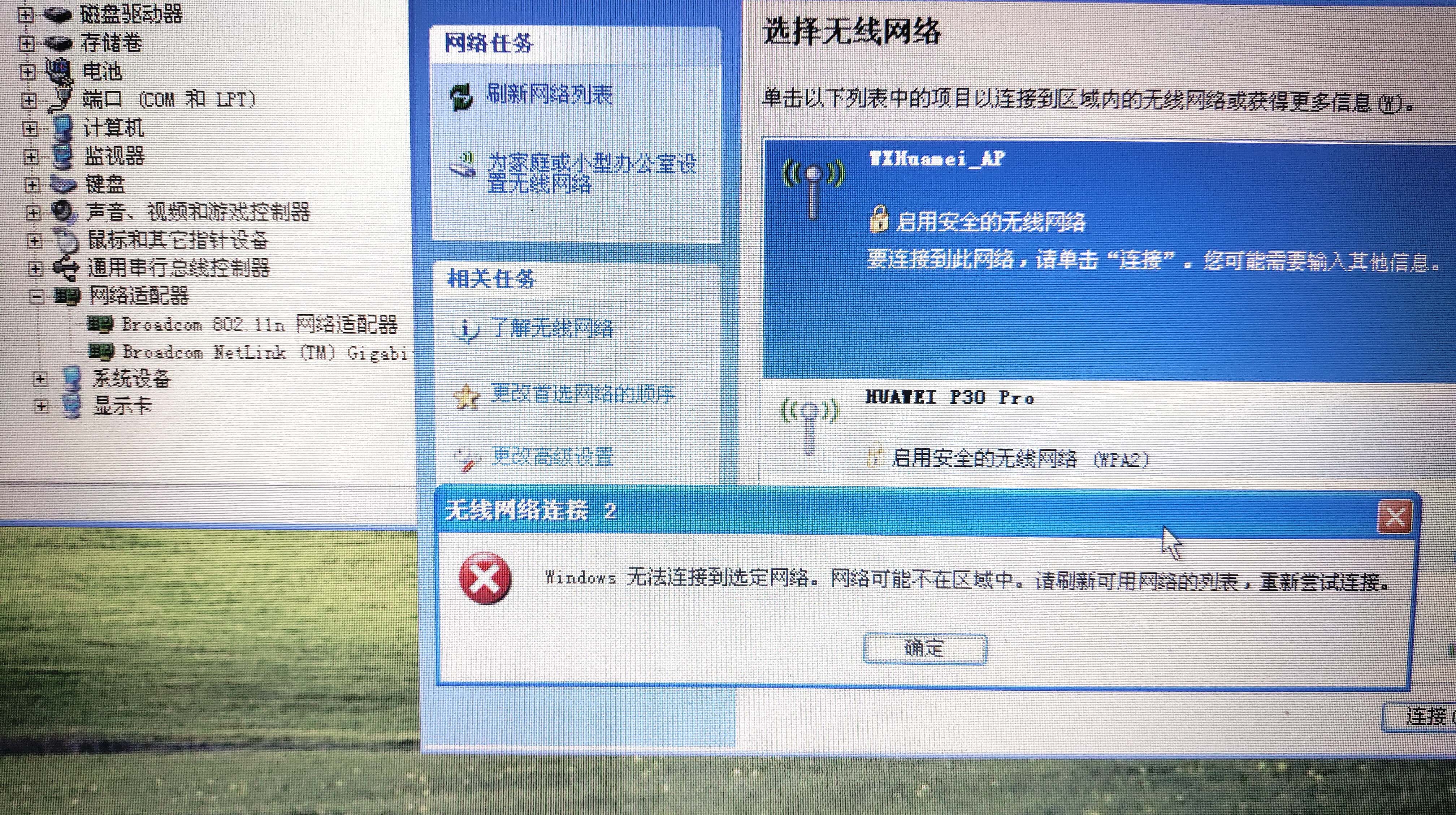 一台年久失修的联想笔记本无线网卡Broadcom 802.11n,能搜索到WIFI信号不弹密码框。提示WINDOWS 无法连接到选定的网络,网络可能不在区域中。请刷新可用网络的列表,重新尝试连接。请问怎么解决?