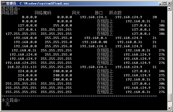 pc的路由表如上图