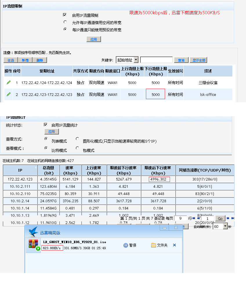 3、路由器限速5000KBS,迅雷下载速度500KB。