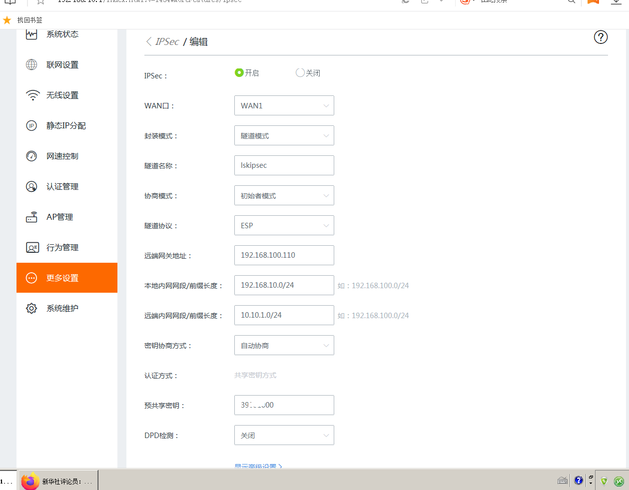 你这隧道协议都不一致,一个是esp、初始者模式;ER路由器也要和对端一样,不过ER里就没有初始者这个模式。