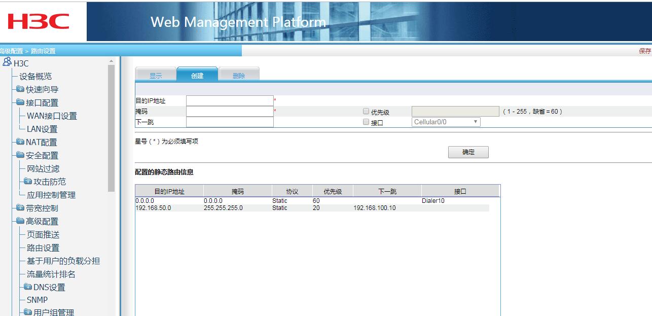 IP: 192.168.50.0/255.255.255.0 下一跳 192.168.100.10