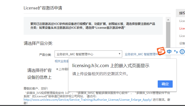 官网注册IMC临时授权,上传历史激活文件hiost的时候提示:请上传设备相关历史文件