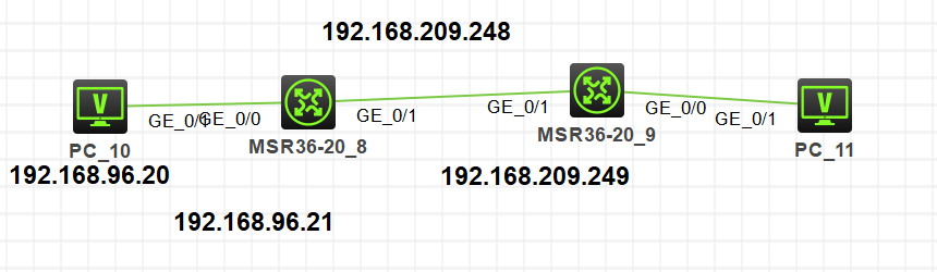 MSR3620-8再配置静态路由指向PC11所在的网段,下一跳地址为192.168.209.249