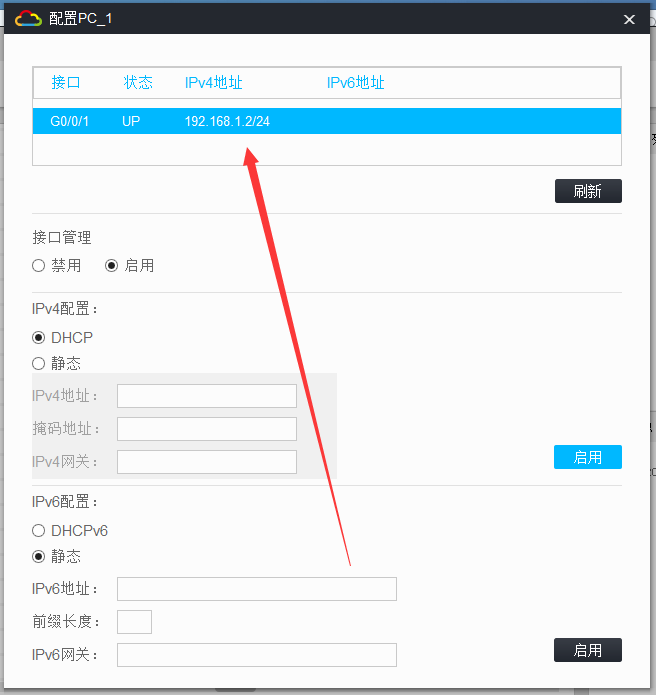 点击pc后 能看见mac 运行时间 内存等参数,但是没有ip 网关 dns的信息