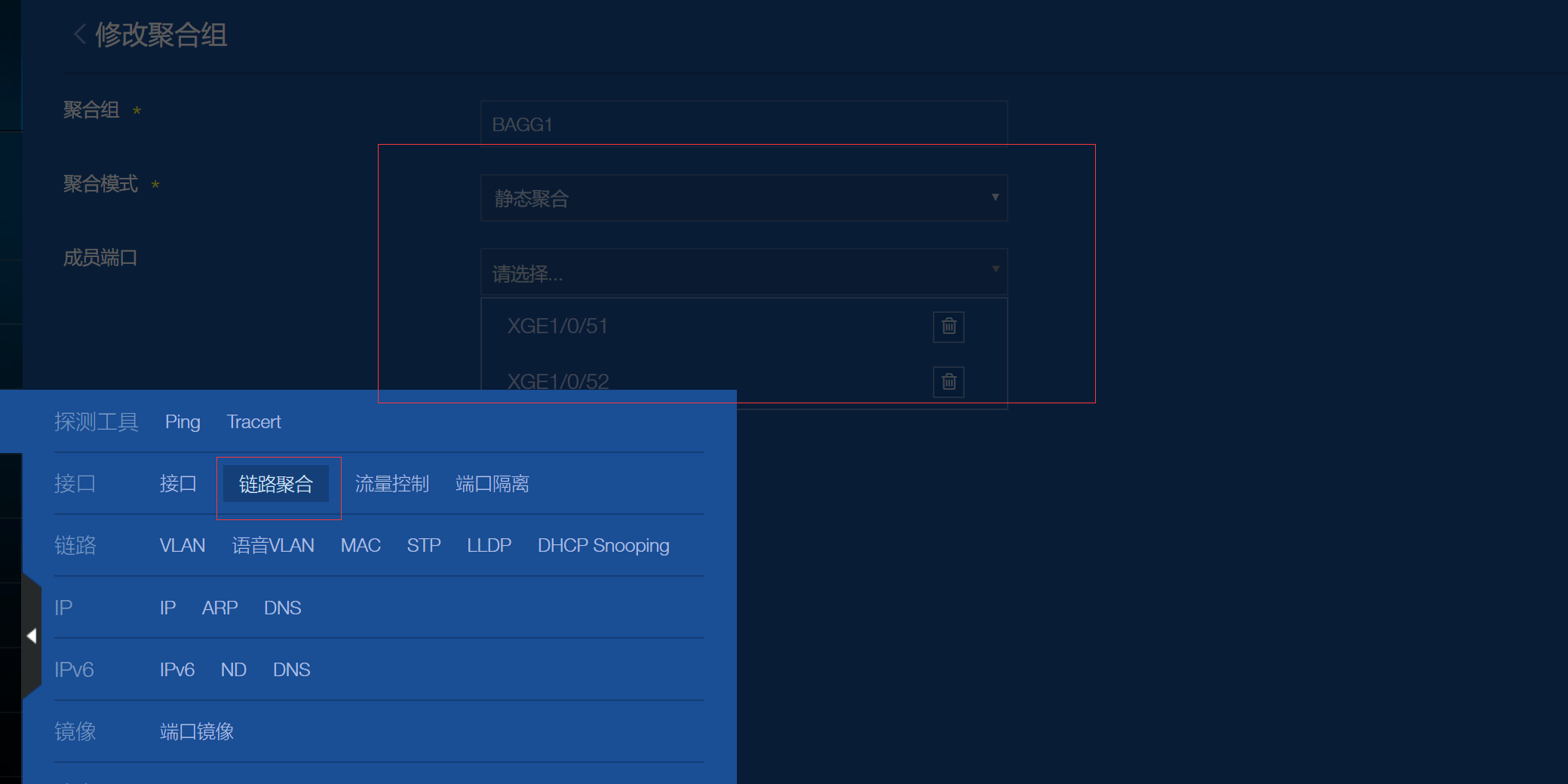 S5130-52S-SI 通过web配置2个光口链路聚合 1条线没有流量