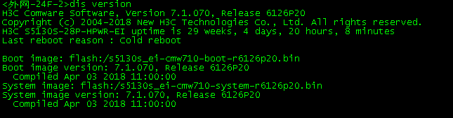 H3C S5024PV2-EI uptime is 0 week, 0 day, 0 hour, 11 minutes