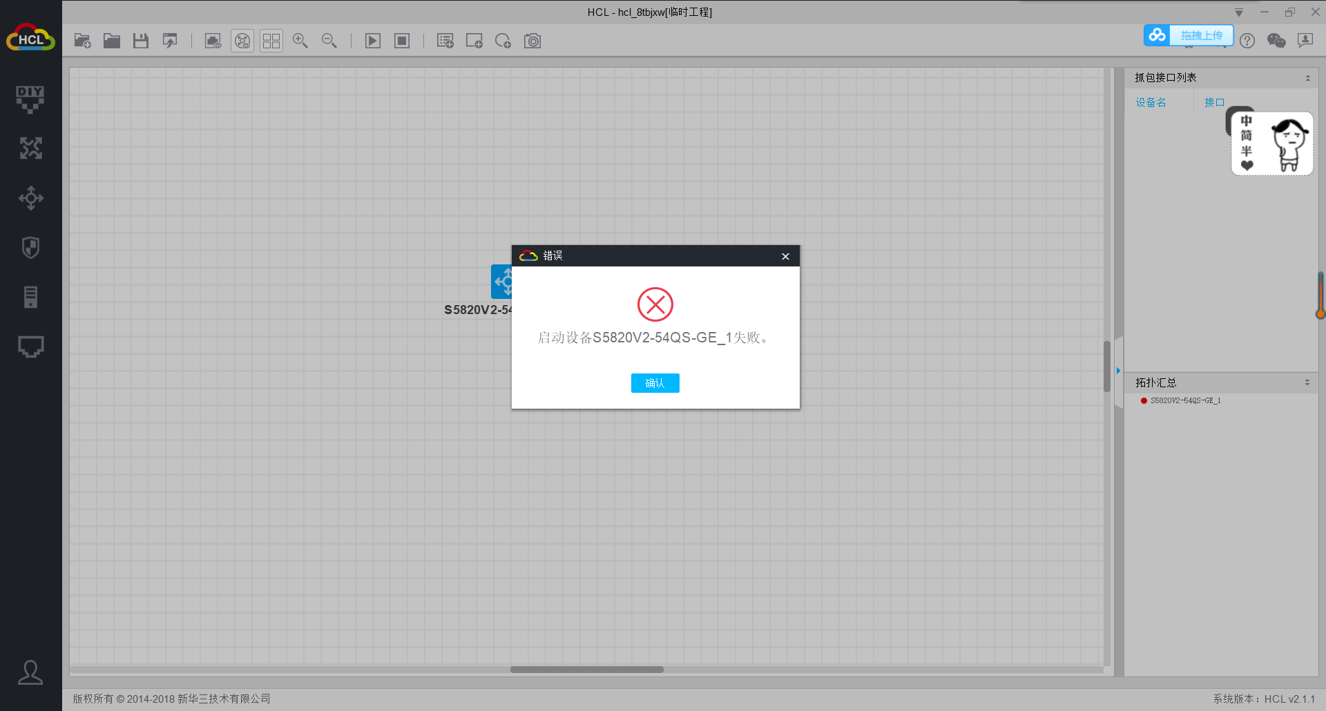 我已经安装了HCL 2.1.1 和组件Vitualbox-5.1.22为什么我的华三模拟器还是临时工程