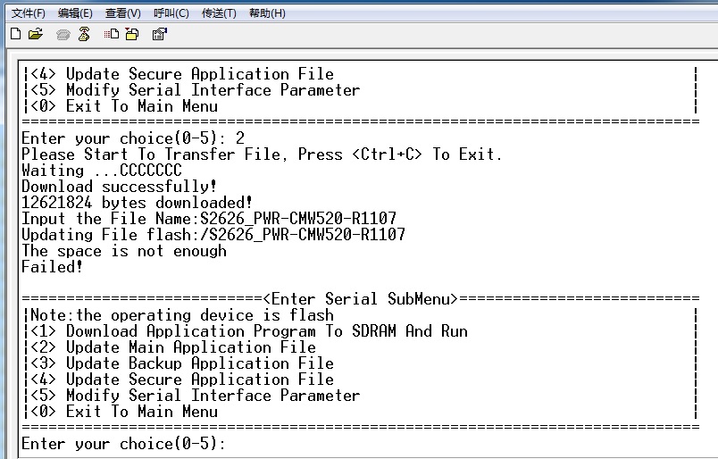 升级 S2626_PWR-CMW520-R1107.bin 提示 The space is not enough (没有足够空间,失败)