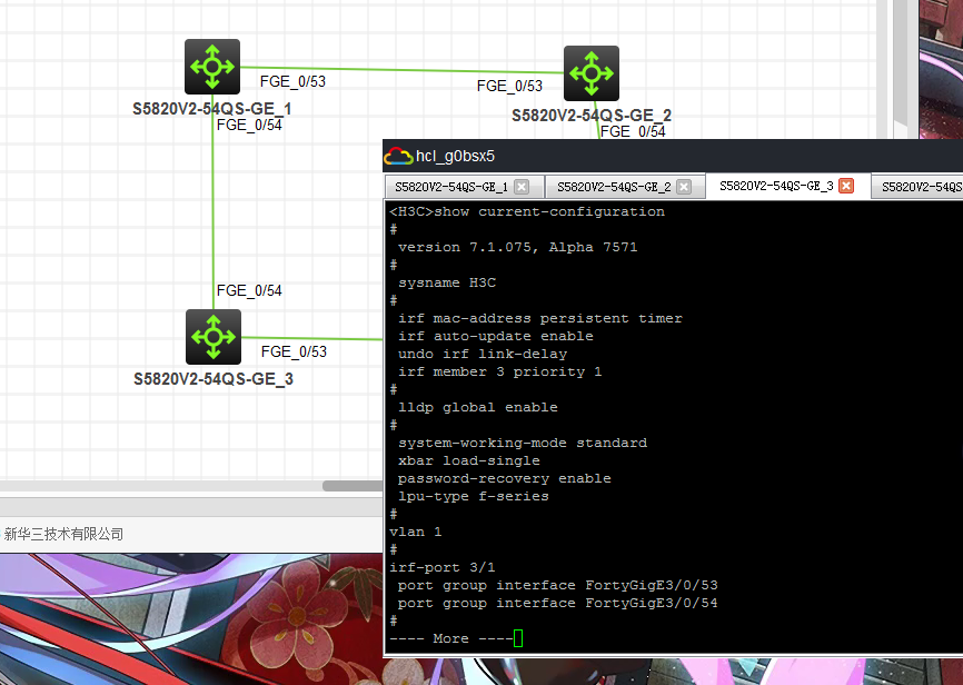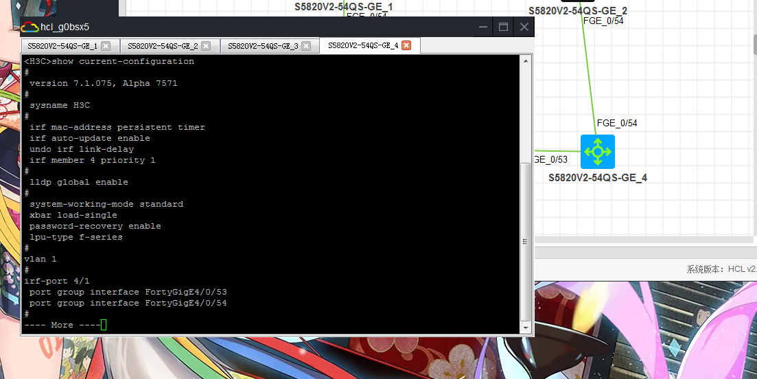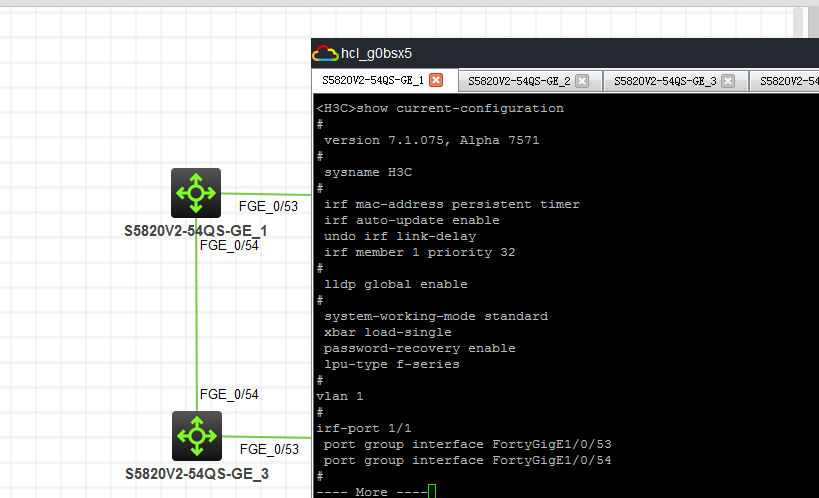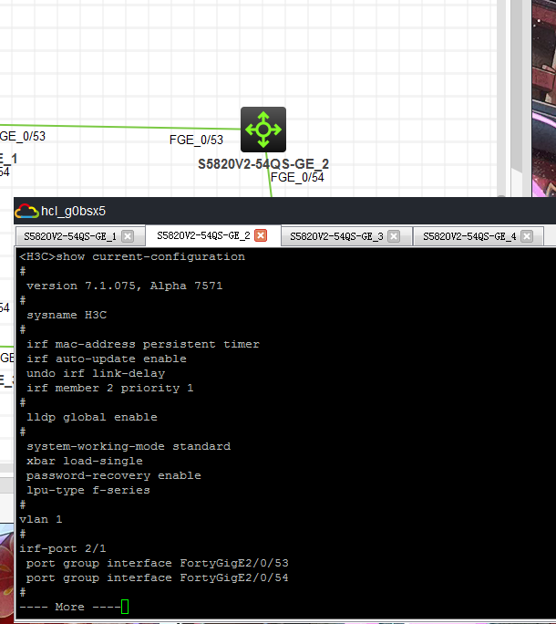 哈喽,看了一下是环形堆叠,以第一个设备为例,两个端口分别连了不同的设备,但是这两个口加的是同一个irf逻辑端口。