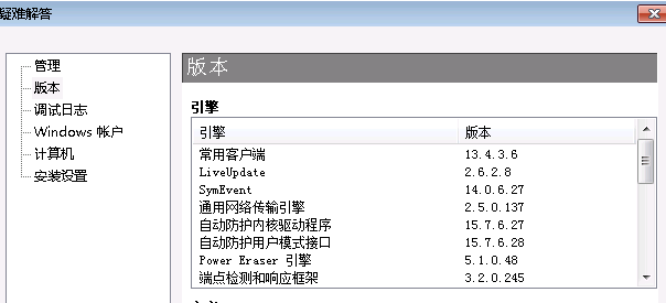 问题是EAD对赛门铁克的检测是针对哪个引擎版本做的,赛门铁克客户端上看到了很多引擎版本。