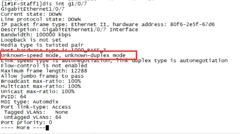 至于接口up down,你可以先强制一下接口的双工和速率,如果强制了依然up down,则更换一下网线和PC,看是否依然up down,因为7口和8口自环可以up说明不是端口本身的问题,为了消除接口up down导致tc改变影响网络,可以配置在接口下配置stp edge-port