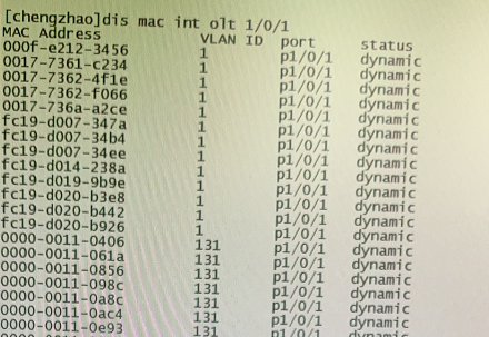 你好:olt追查某终端设备mac和地址在哪个onu下的命令 没查到,请赐教