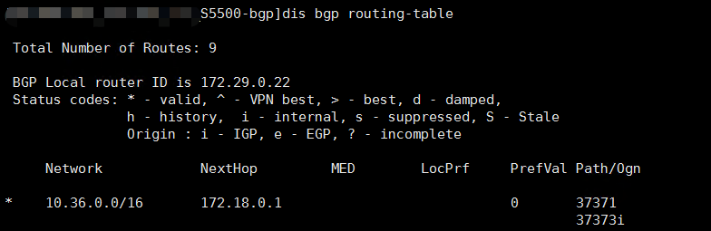 S5500学习到的10.36.0.0/16不是最优路由,没有>符号,导致无法向其他EBGP邻居传递。